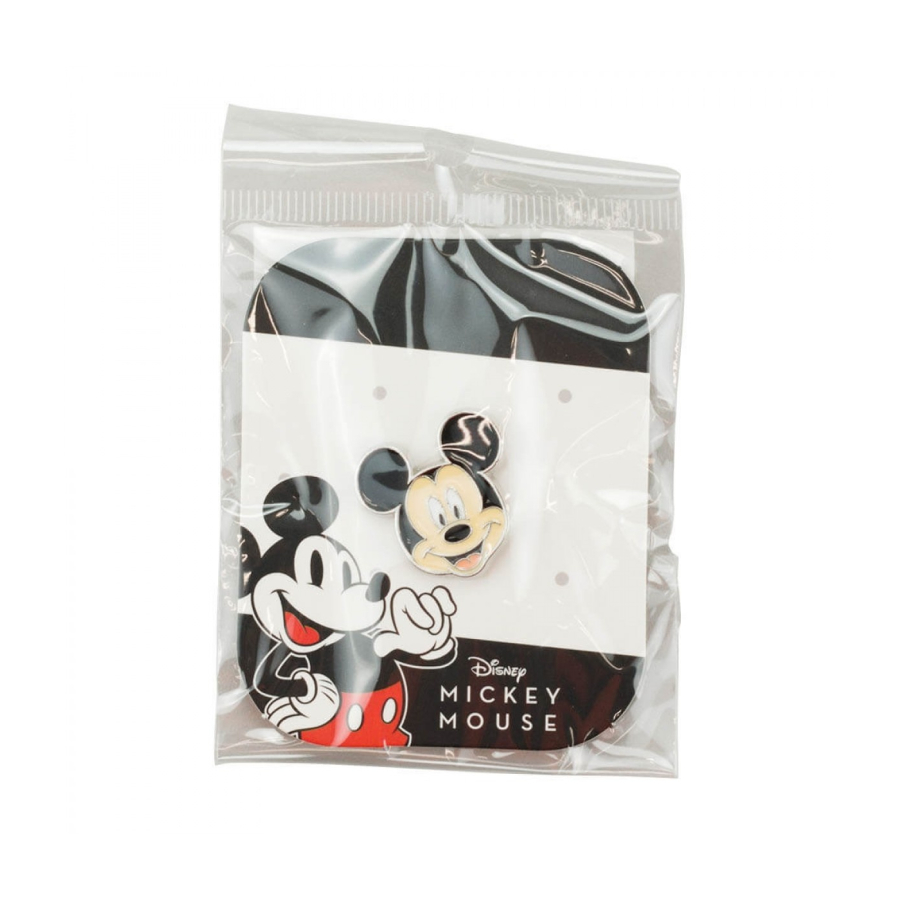 Broche de metal com 2,5 x 2,5 cm de dimensão no formato do rosto do Mickey. Use na jaqueta, no boné, na mochila e na bolsa. Material: metal
