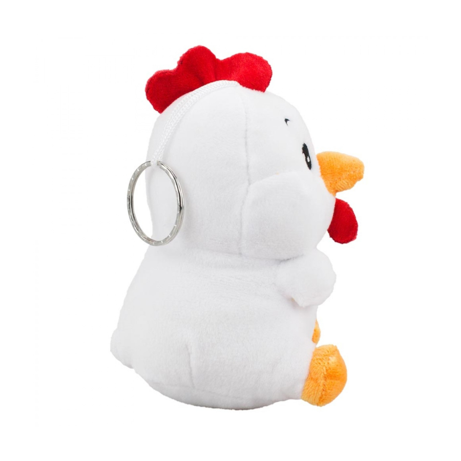 Bichinho de pelúcia no formato de um galo branco de crista vermelha. Galinho de pelúcia tem 17 cm de altura e vem com chaveiro. Material: poliéster Enchimento: fibra de poliéster Produto certificado por Órgão acreditado pela CGCRE do INMETRO