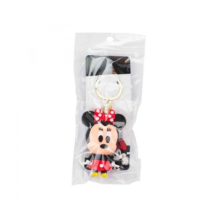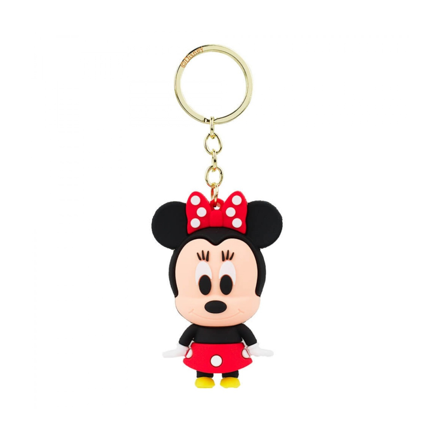 Chaveiro de metal corrente dourada com enfeite no formato do Minnie cabeçuda de 7 cm. Material: metal e silicone