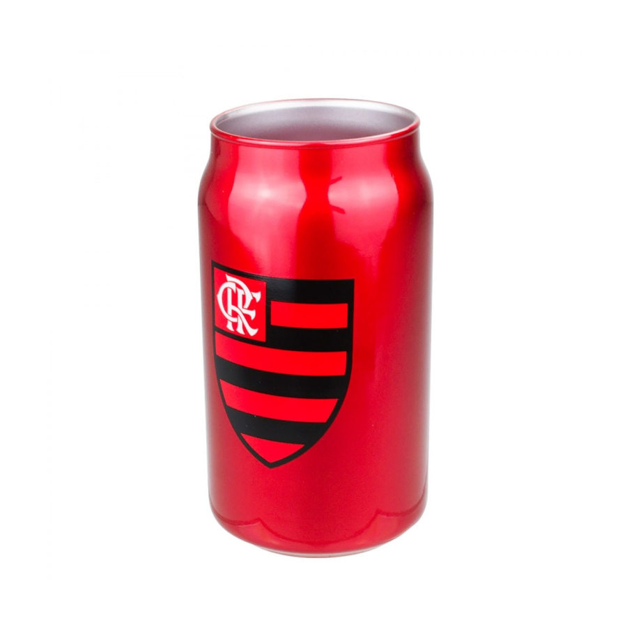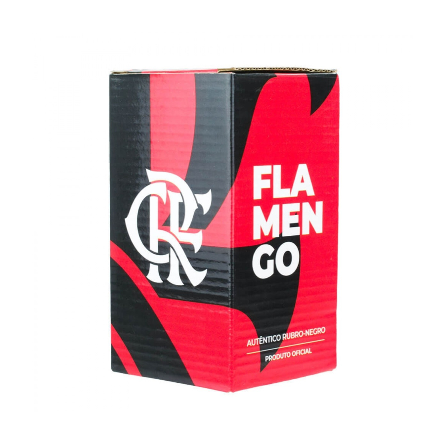 Copo de vidro todo na cor do Flamengo. Copo vem com 450 ml de capacidade e é gravado com imagem do escudo do clube. Além de usar pra tomar bebida, serve como porta canetas e até como vaso. Material: vidro