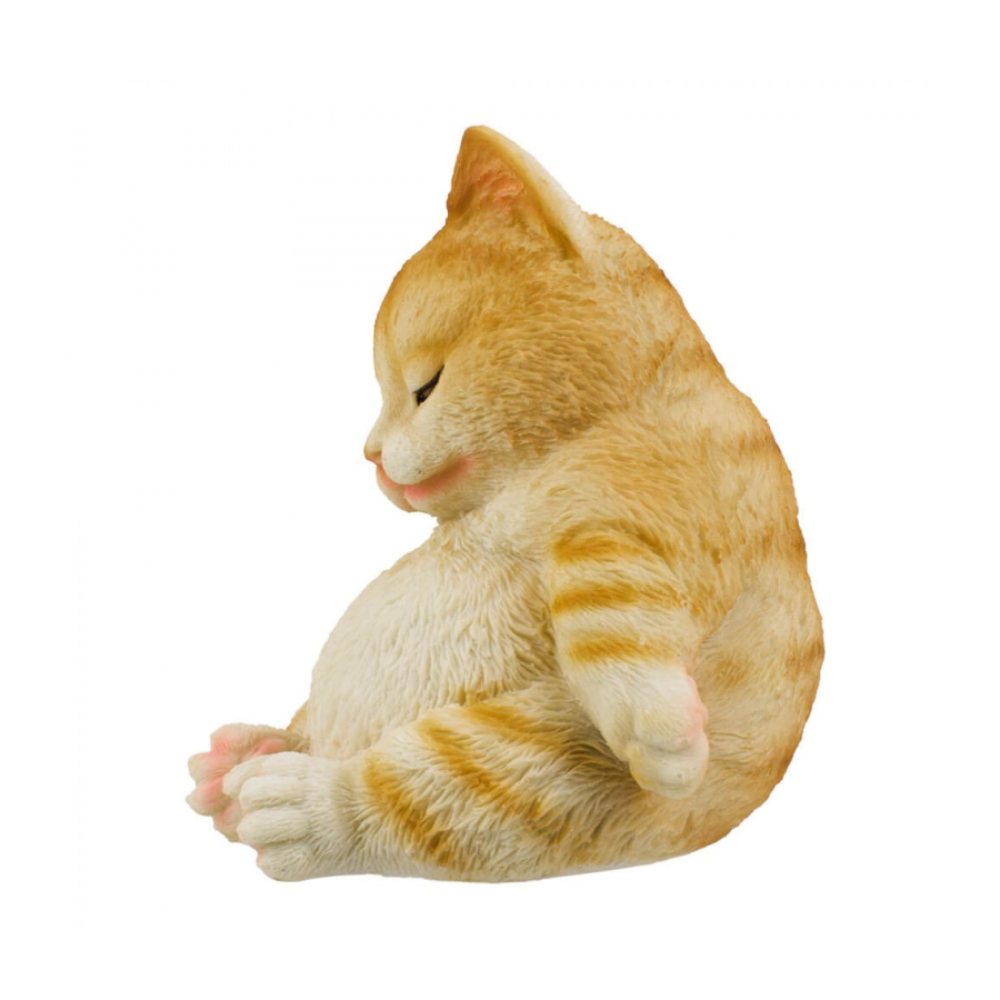 Enfeite de resina no formato de um gato marrom dormindo com 13 cm de altura. Material: resina