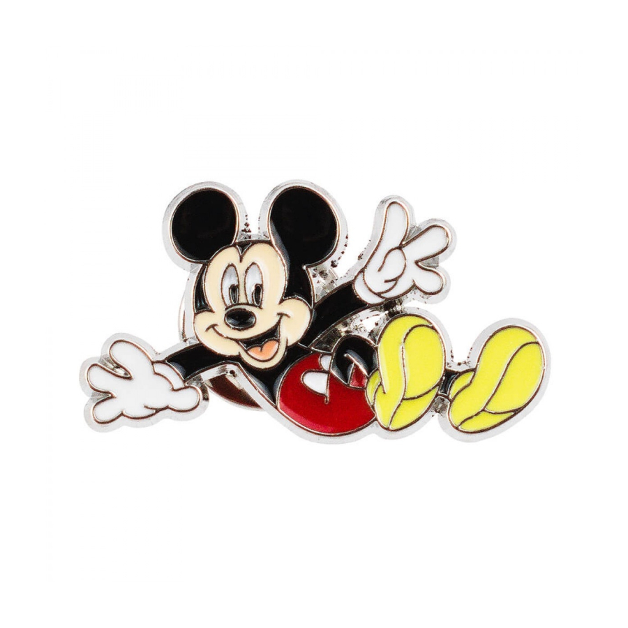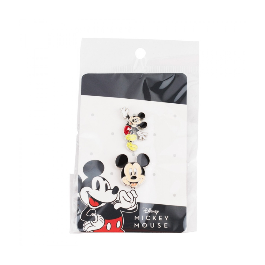 Jogo com 2 broches do Mickey. Broche do rosto do Mickey de 2,5 x 2,5 cm e broche do corpo todo do Mickey de 2 x 3,1 cm nas cores original. Material: metal