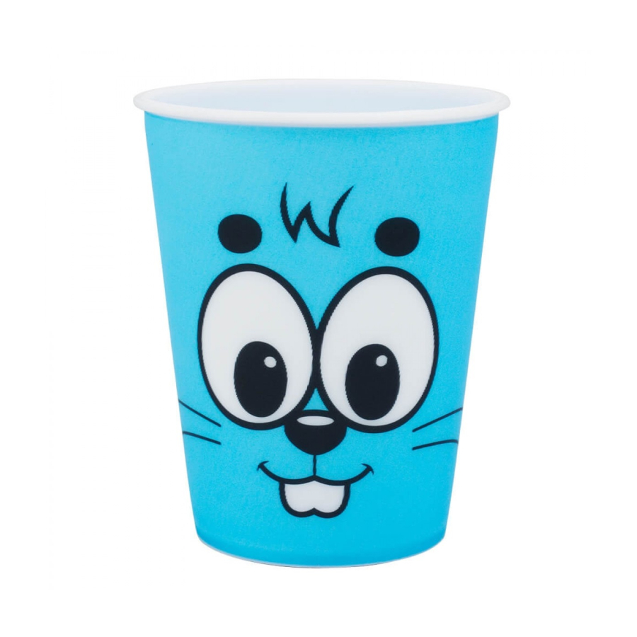 Jogo com 2 copos de plástico reutilizáveis de 400 ml com estampa do rosto do Sansão, personagem dos quadrinhos Turma da Mônica. Material: plástico